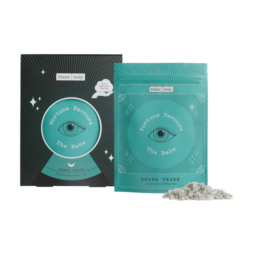 Unveil your skin's natural glow with Frank Body's Green Tease Scrub. This limited-edition scrub combines the antioxidant power of green tea with the hydrating benefits of avocado oil and honey. Gently exfoliate and nourish your skin, leaving it soft, smooth, and radiant. Perfect for those seeking a cruelty-free, eco-friendly skincare solution. Embrace the fortune-telling theme with a playful tarot card included in every package.